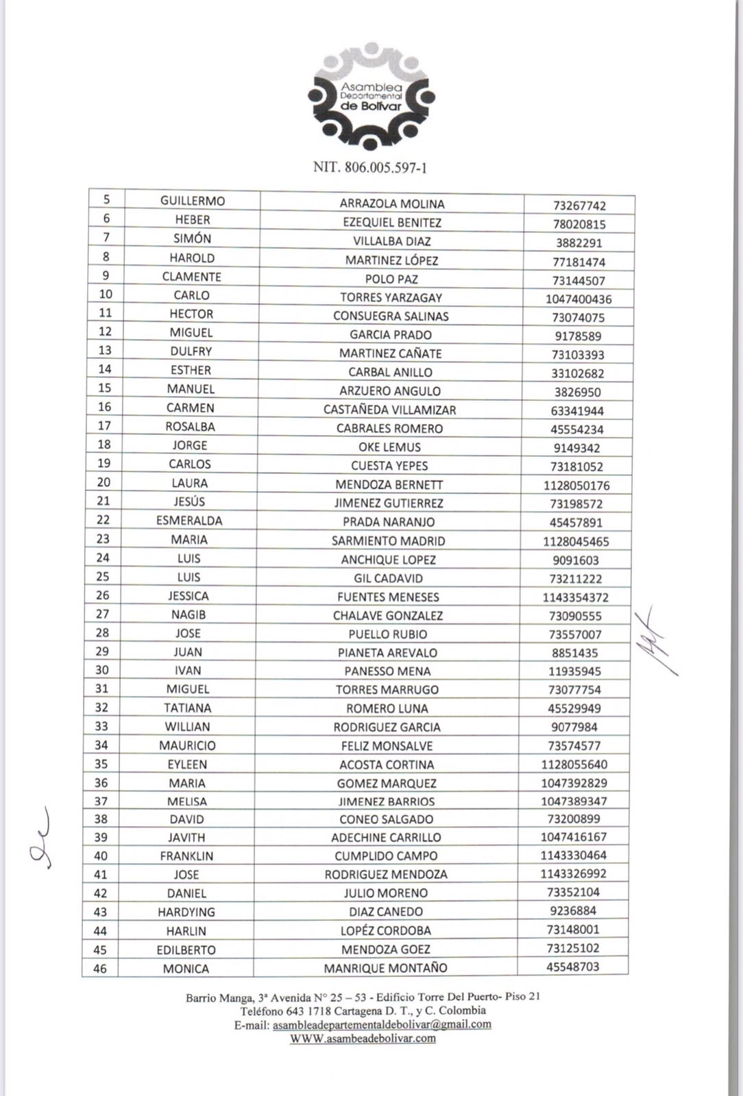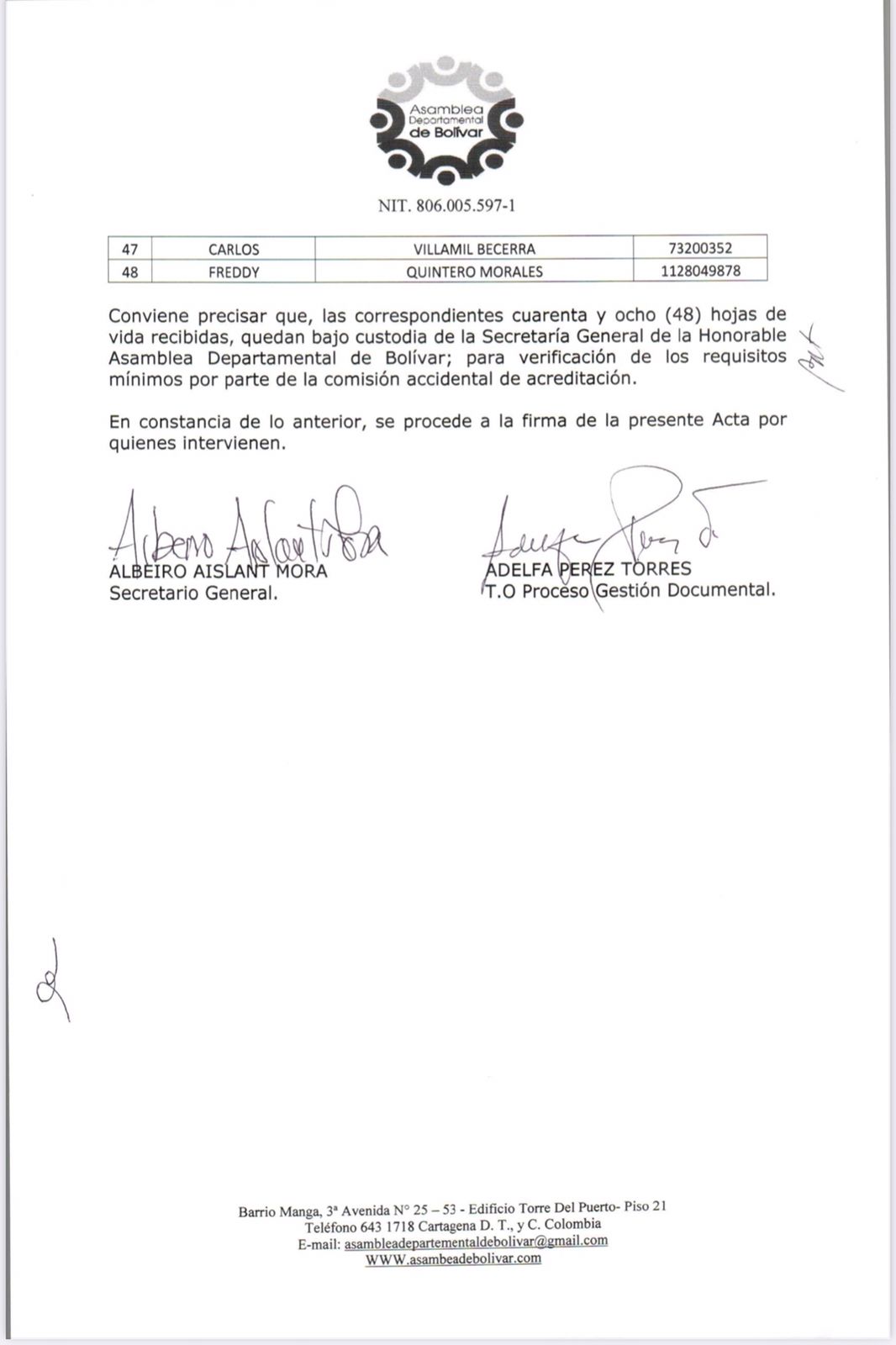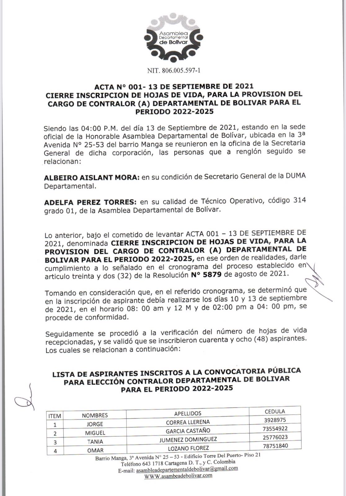 La Asamblea Departamental de Bolívar dio a conocer una lista con los 48 nombres que buscan aspirar al cargo de Contralor Departamental de Bolívar.