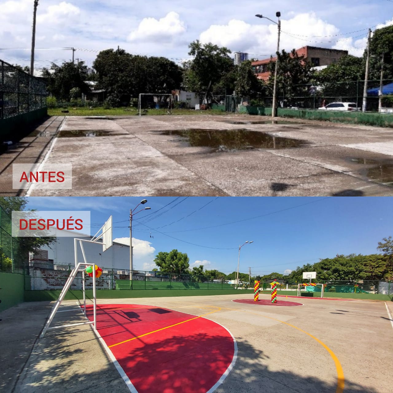 Recientemente se realizó la inauguración de tres canchas en el barrio El Socorro y Santa Clara, obras que se encontraban en mal estado sin cerramiento e iluminación, estos espacios fueron entregados y puestos a disposición para el disfrute y aprovechamiento por parte de niños, jóvenes y adultos.