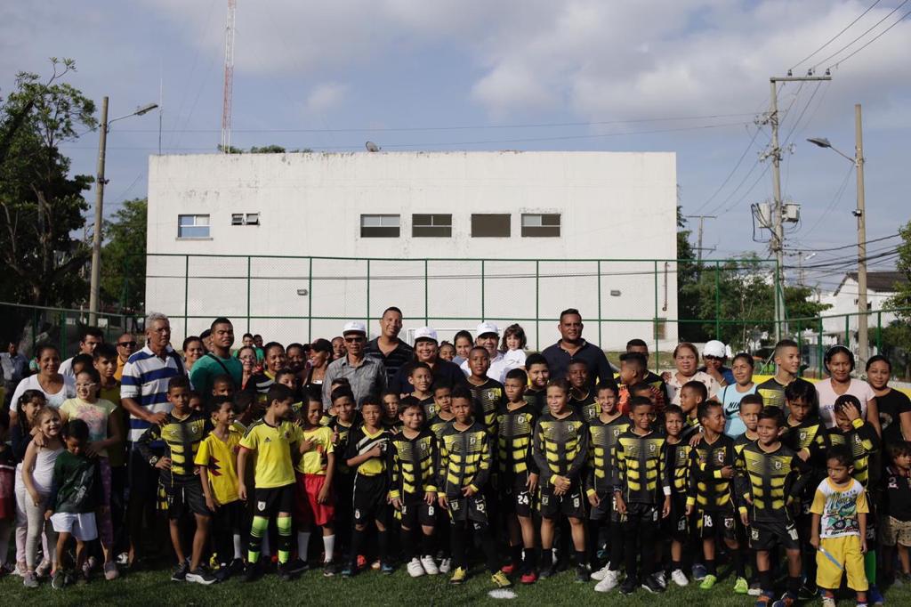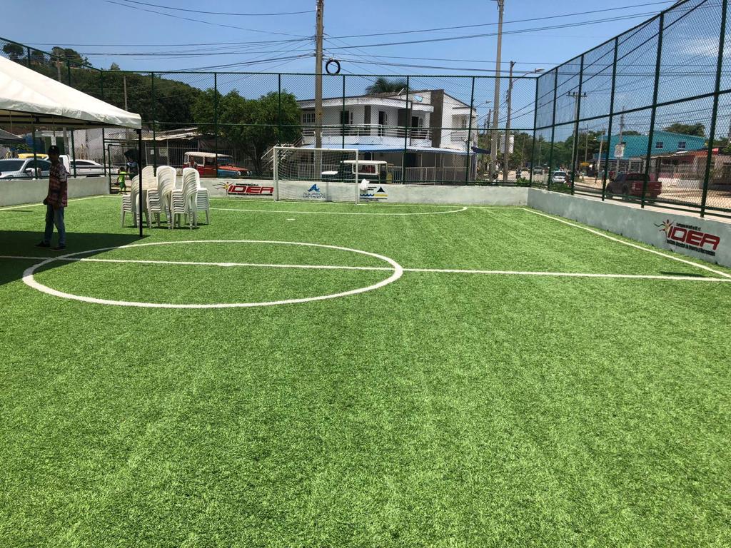 la Fundación Atarraya instaló mallas, luces, puertas y grama sintética nueva; además de pintar toda la zona para dar una apariencia nueva y mejorada. Esta obra fue entregada al IDER.