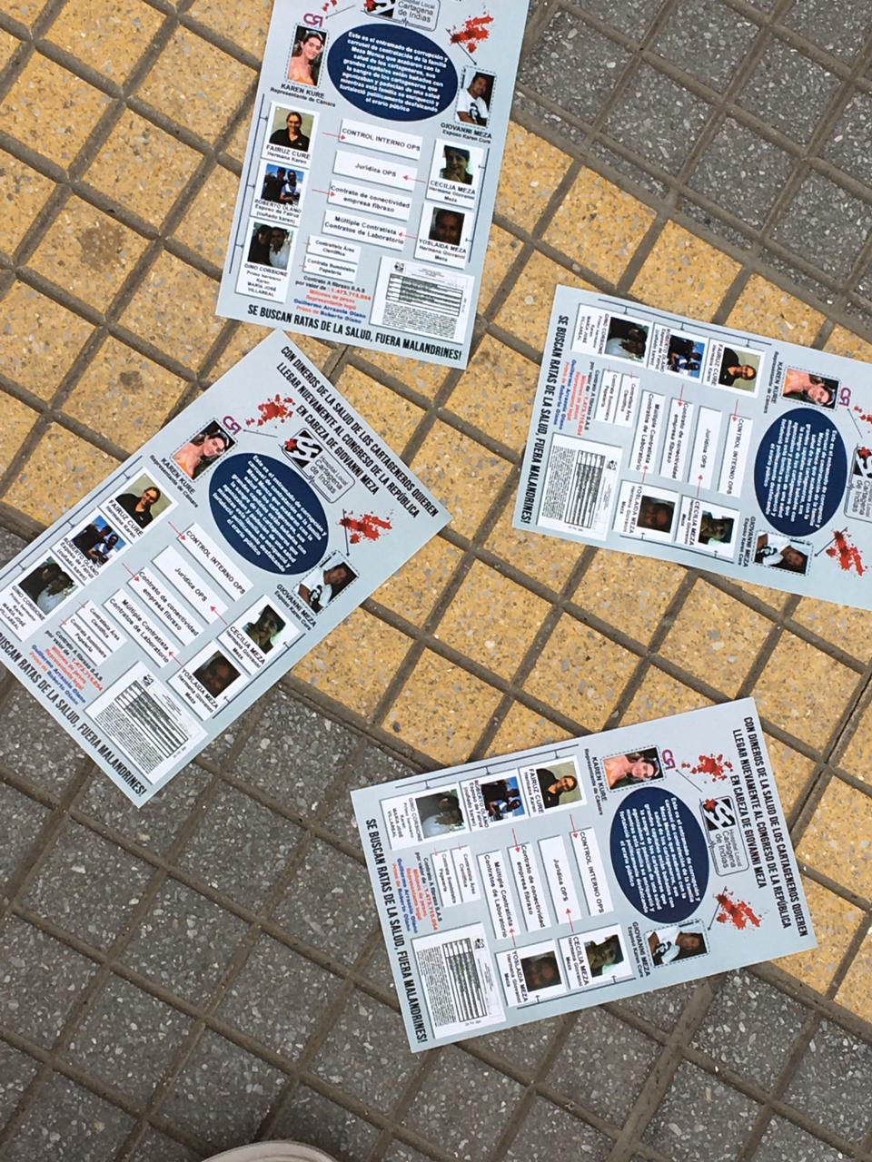 “Totalmente desfinanciado y al borde de la quiebra. La ciudad está pasando un momento muy crítico en la pandemia de la covid-19 por la deficiencia que presenta el sistema de salud. Una de las razones principales es que la representante Karen Cure y su familia han venido desangrando esta entidad, lucrándose de grandes contratos”, se lee en la parte alta del volante.