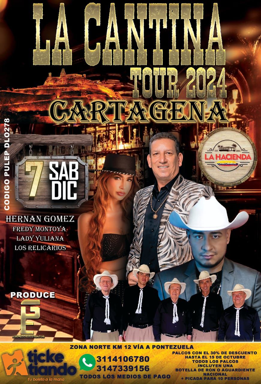 El 7 de diciembre es una fecha muy especial en Cartagena, por la tradicional cabalgata, este mismo día se llevará a cabo en el centro de eventos La Hacienda, el concierto denominado La Cantina Tour Cartagena 2024, donde tendrán como plato fuerte al reconocido cantante de música popular Hernán Gómez hermano del fallecido rey del despecho Darío Gómez, quién inmortalizó todo su repertorio y además, rendirá homenaje en esta presentación.