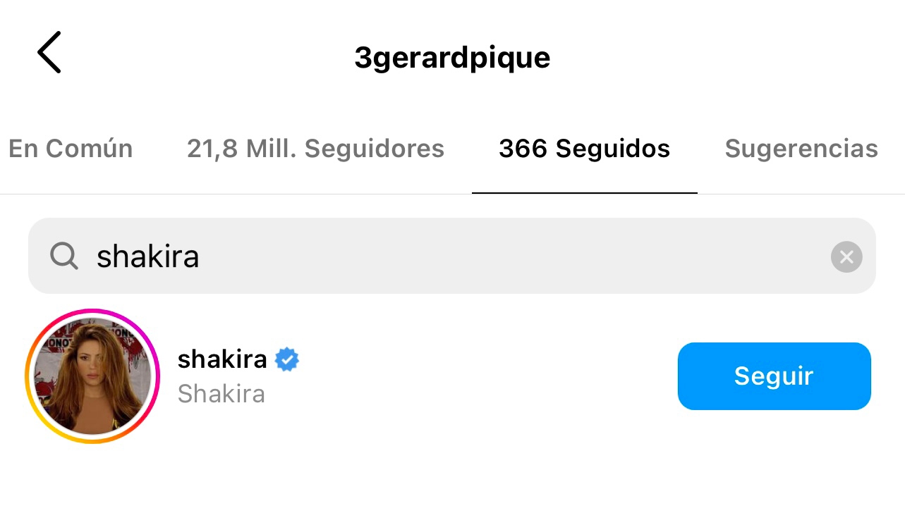 Mientras tanto, Piqué sigue a 366 personas entre las que se encuentra Shakira, el streamer Ibai Llanos, una cuenta privada de Clara Chía que podría ser su usuario personal y decenas de futbolistas reconocidos.