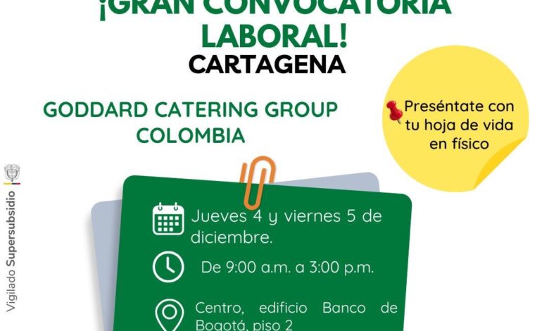 Empresa Goddard Catering Group Colombia está en búsqueda de talento para las siguientes vacantes: