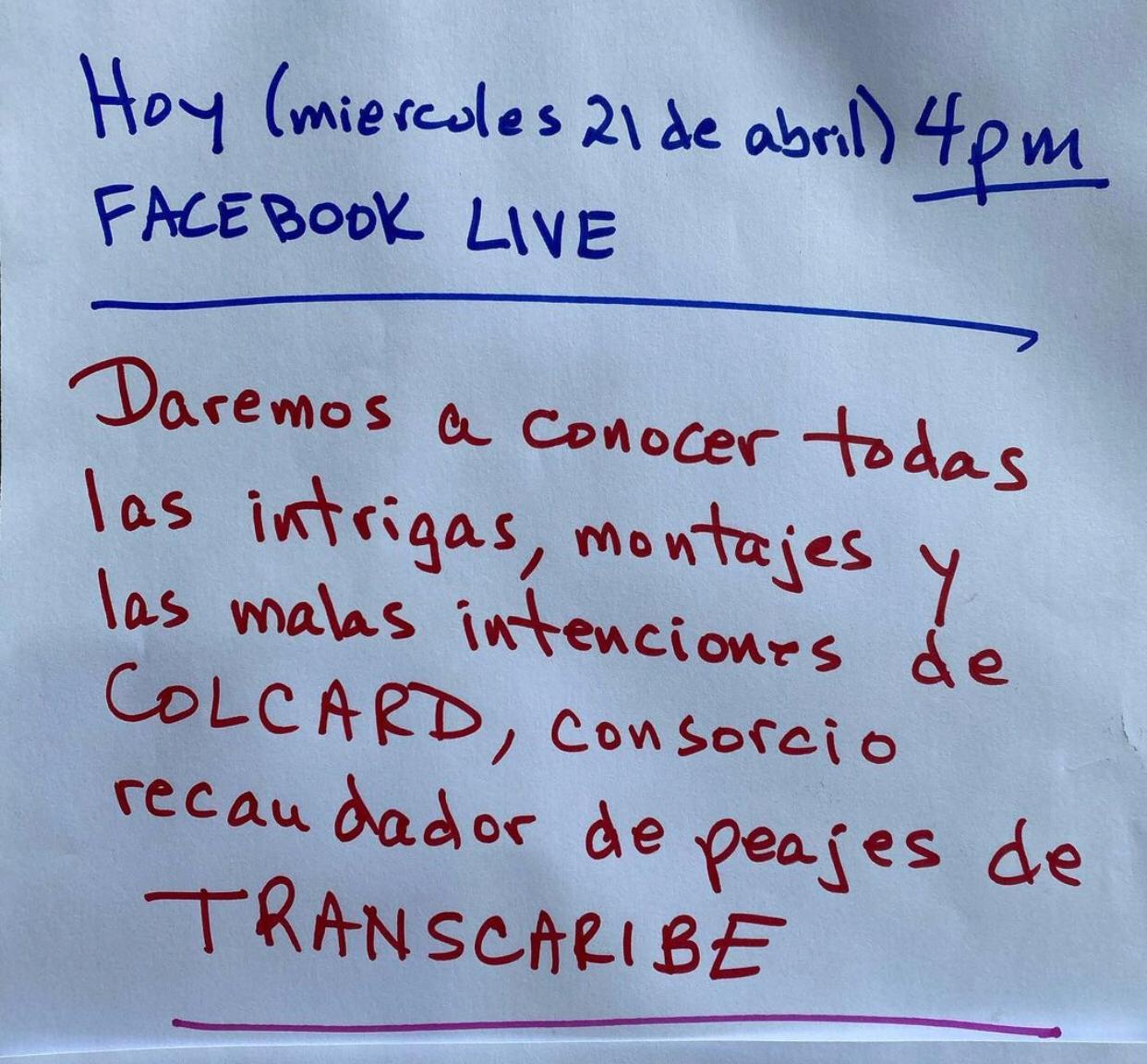 A través de sus redes sociales de ‘Salvemos Juntos a Cartagena’, el alcalde William Dau anunció un Facebook Live para decir las supuestas malas intenciones, intrigas y montajes que tiene COLCARD, consorcio recaudador del dinero de Transcaribe.