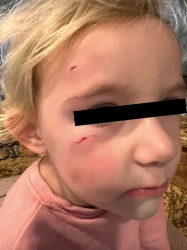 Magan contó que el gallo de nombre HeiHei arañó a la menor en el rostro y cuello, incluso documentó el hecho con evidencias fotográficas, mismas que acompañó con un texto donde se mostró orgullosa de su acción pues al parecer la pequeña pudo perder un ojo debido a los arañazos.
