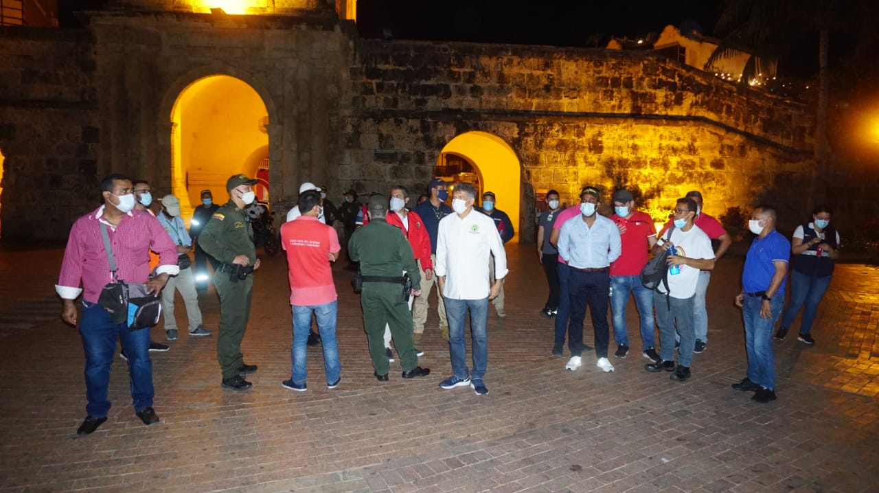 El alcalde de la Localidad 1: Histórica y del Caribe Norte, Luis Negrete, en conjunto con la Secretaria del Interior, recorrió las calles del Centro Histórico de la ciudad, para comprobar de primera mano que se cumpliera el nuevo horario establecido para el toque de queda.