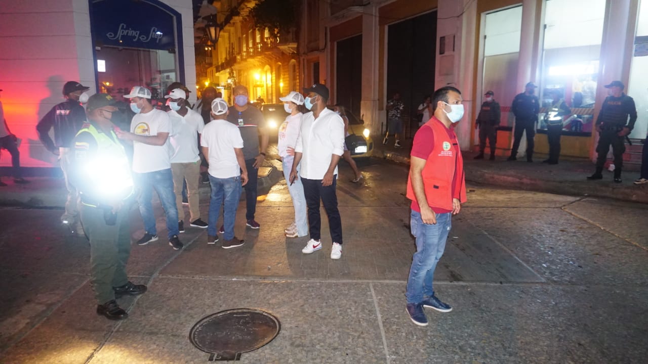 El alcalde de la Localidad 1: Histórica y del Caribe Norte, Luis Negrete, continuó liderando operativos en el Centro Histórico de Cartagena con el fin de verificar y hacer cumplir el toque de queda establecido por el Distrito y las demás nuevas restricciones impuestas.