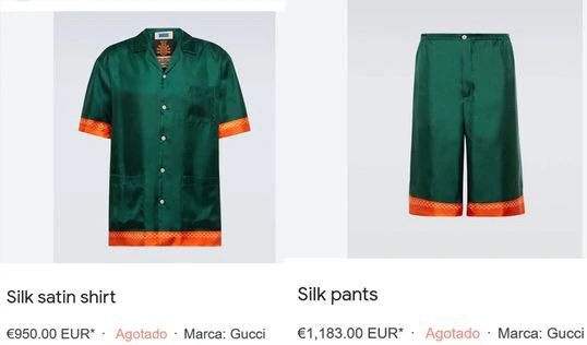 De la misma forma, el pantalón corto a juego de los mismos colores, que se oferta a una cantidad aún mayor (1.183 euros o 223.200 pesos argentinos) también se encuentra como no disponible.