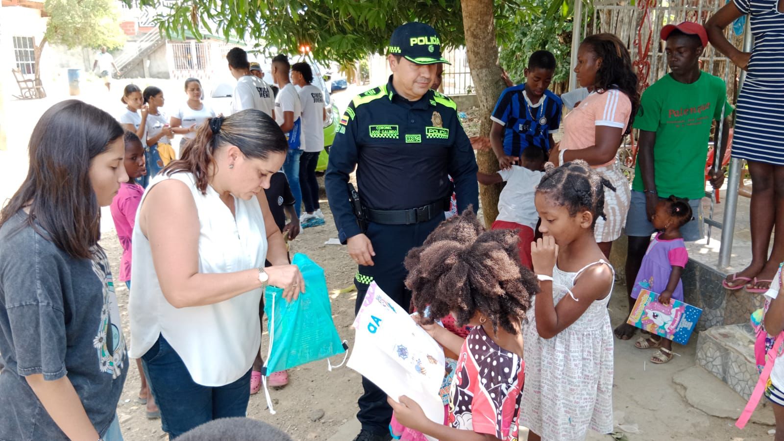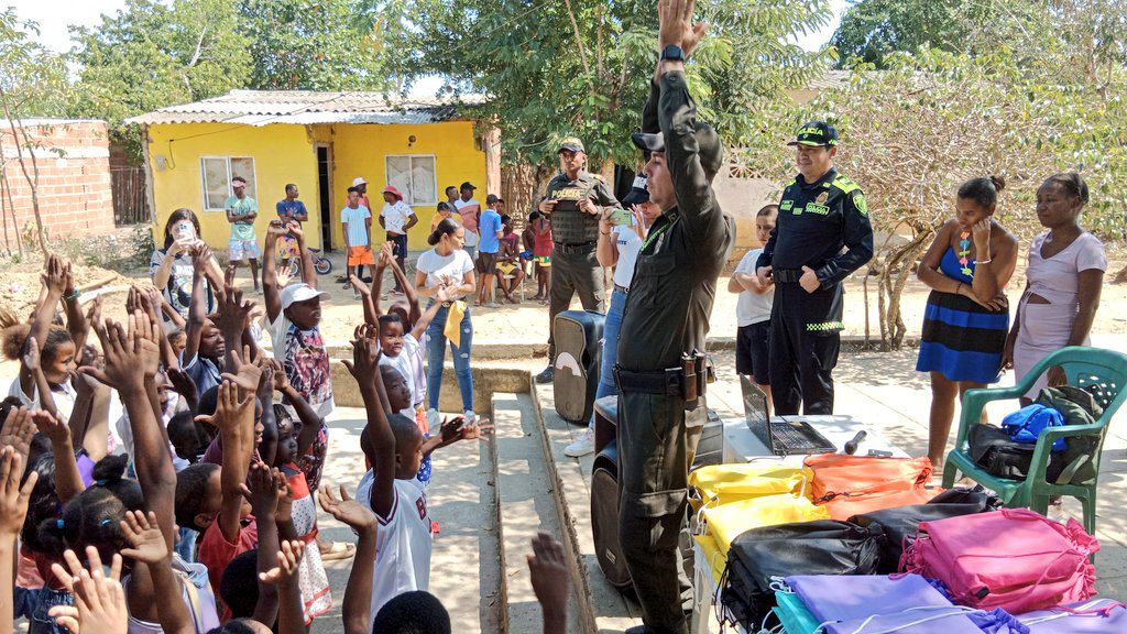 Niños de la comunidad de Palenque de San Basilio recibieron bolsos y kits escolares por parte de la policía departamental