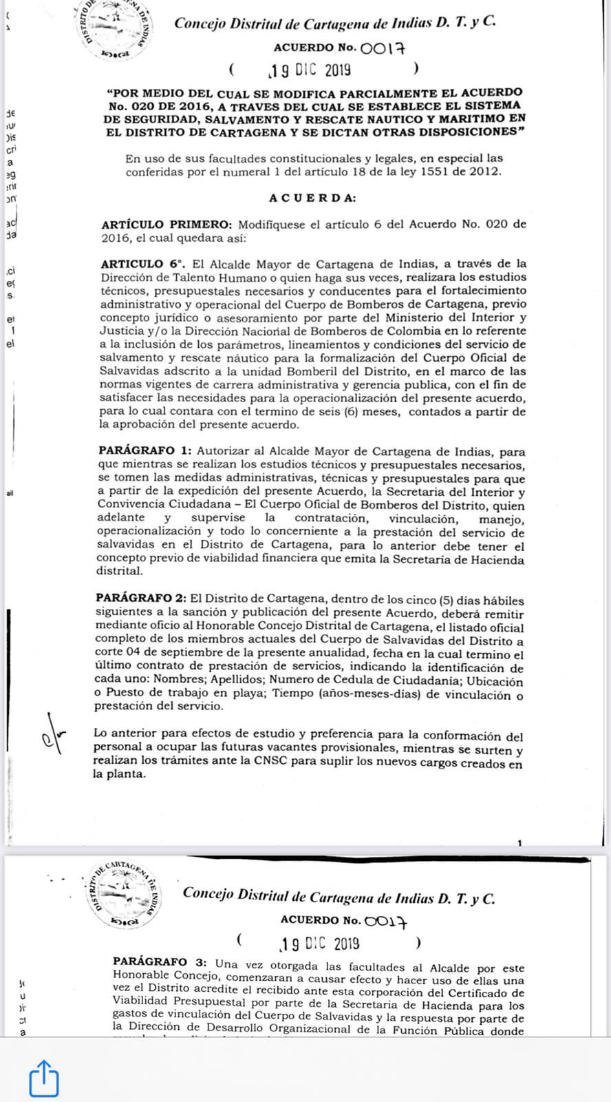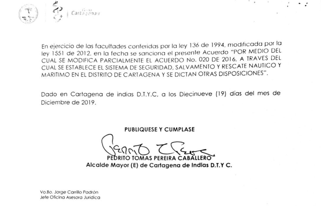 Sin embargo, a solo dos semanas de terminar su mandato en 2019, fue Pedrito Pereira quien tras presentar el acuerdo ante al Concejo Distrital, logró que fuera sancionado.