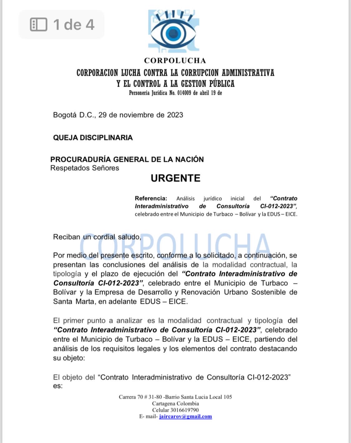 Graves irregularidades y hallazgos fueron puestas en evidencia tras el contrato que estableció la administración actual del municipio de Turbaco con la Empresa de Desarrollo y Renovación Urbano Sostenible de Santa Marta.
