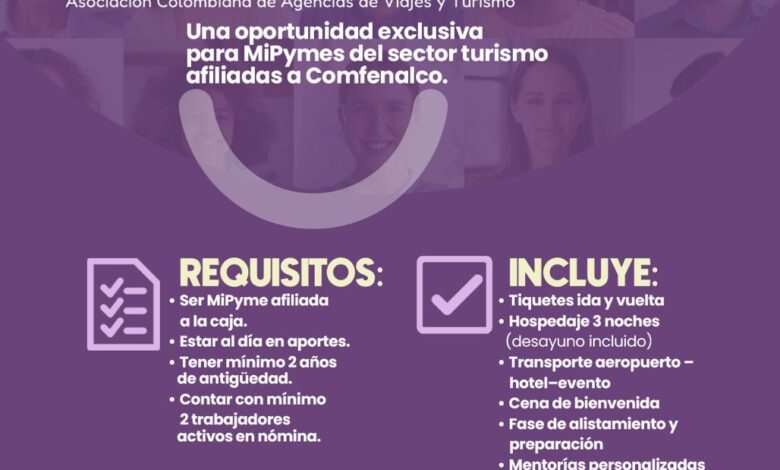 💼 Oportunidad exclusiva para MIPYMES del sector turismo afiliadas a Comfenalco.