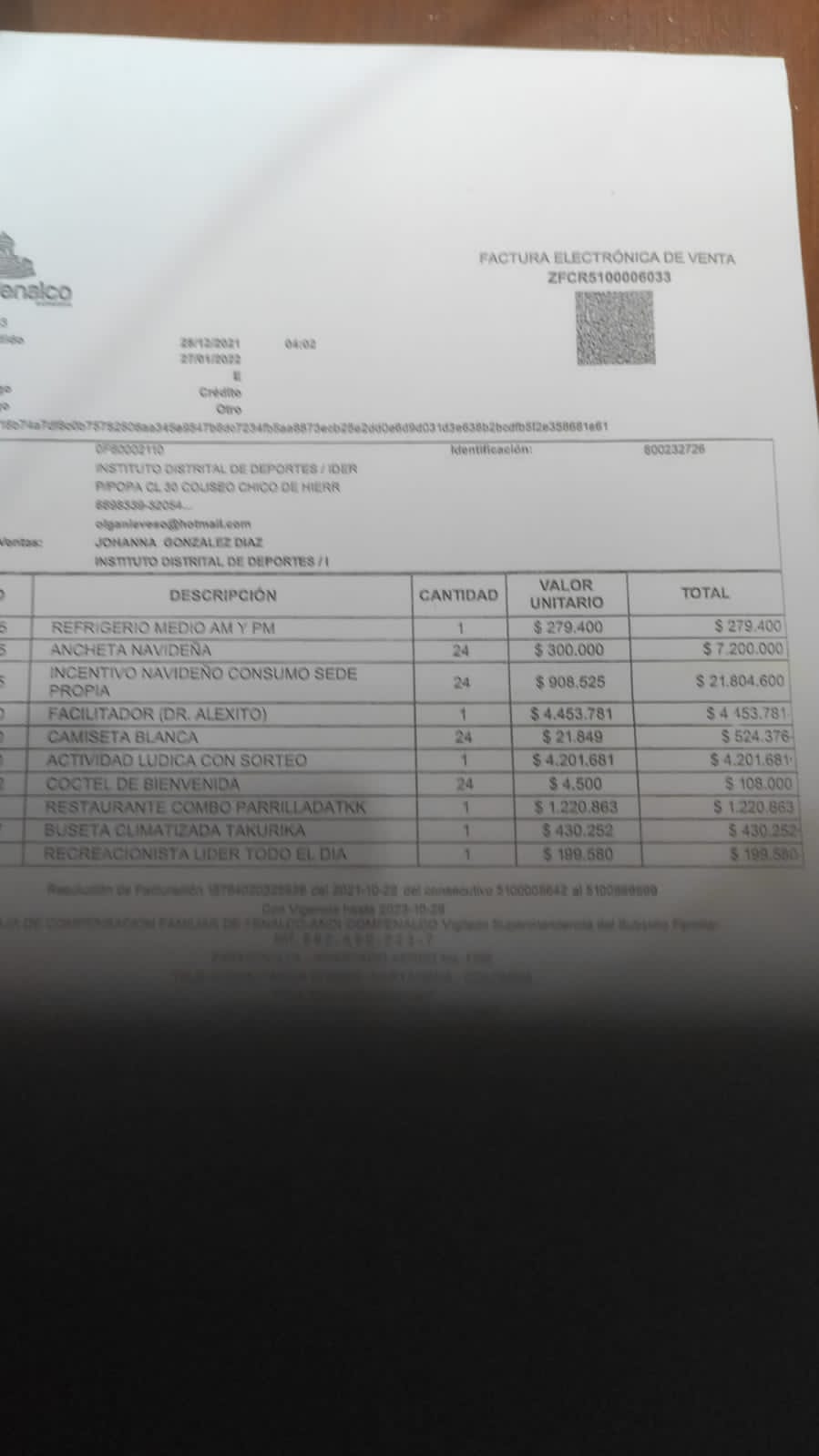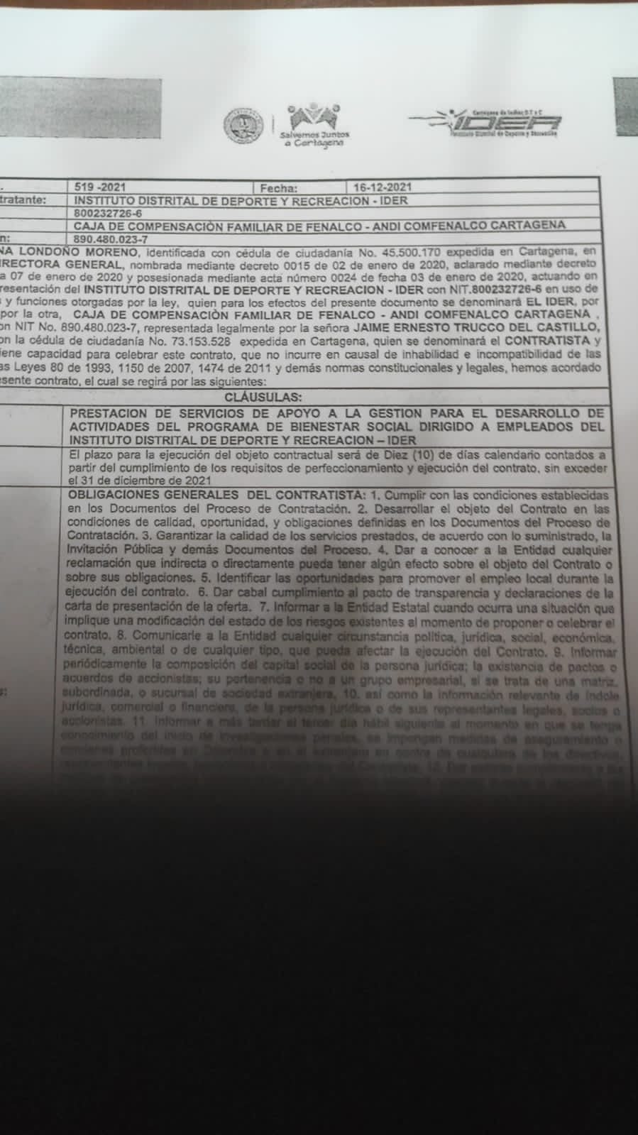 Con documentación que soporta su denuncia, Reyes manifestó su molestia e impotencia por la rumba realizada por el IDER con 24 personas y en la que se gastaron $42.286.370 millones de pesos en plena emergencia sanitaria.